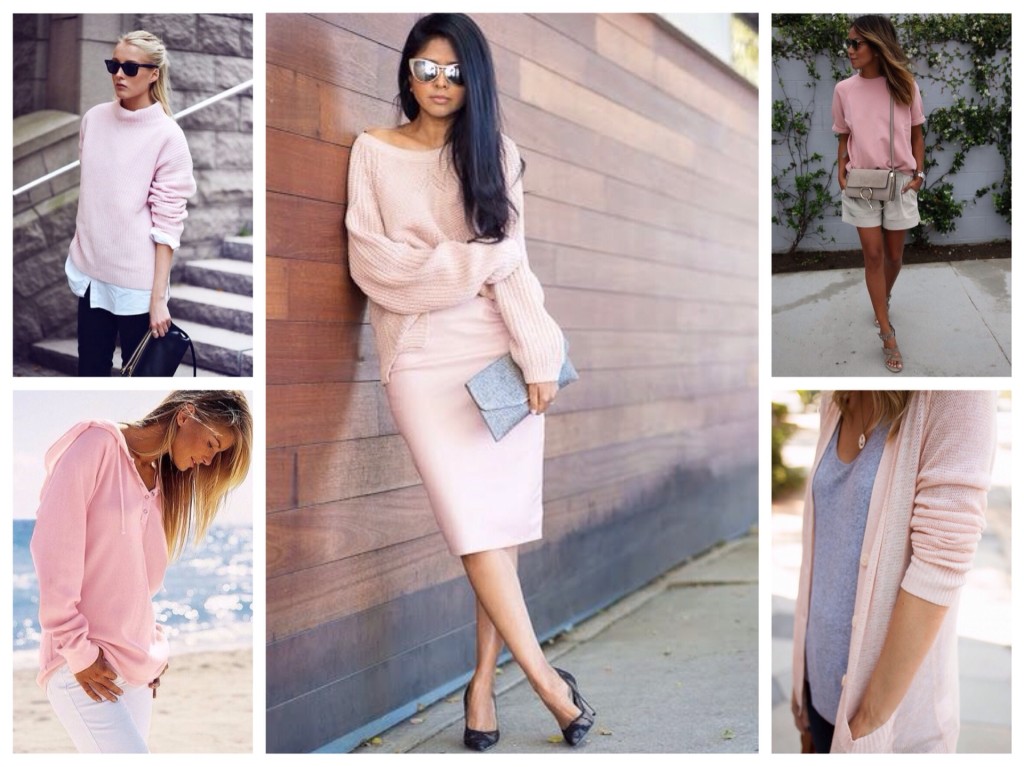 Актуально сочетание розового цвета в одежде с другими пастельными тонами. Дополняйте модный цвет другими нежными цветами – мятным, персиковым, лавандовым или светло-голубым фаворитом 2016 года «безмятежность».