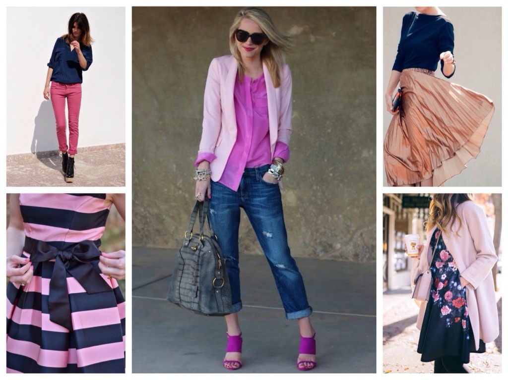 Для тех, кто не хочет ограничивать себя классикой и не боится ярких сочетаний, можно предложить скомбинировать розовый цвет в одежде с травянисто-зеленым, желто-горчичным, винным, лиловым, шоколадно-коричневым – color blocking, выполненный в этих оттенках, смотрится стильно и при этом не банально.