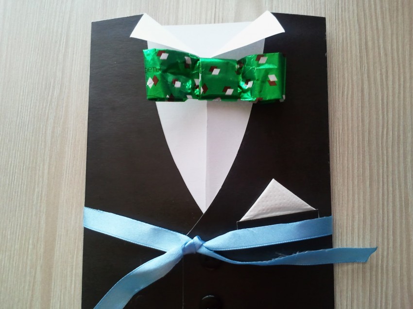 Мужскую открытку сделать просто, и без особенных приготовлений.
