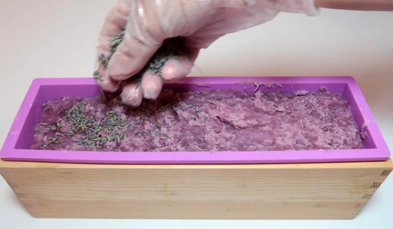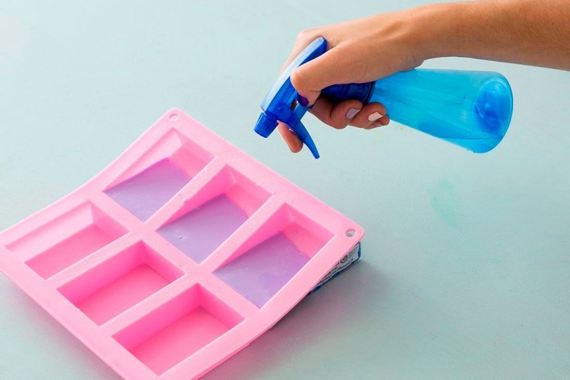 При заключительном этапе, как делают мыло, образование пузырьков из воздуха на нем устраняют спиртом. Опрыскивают им залитые формы. Затем выдерживают несколько дней для созревания.