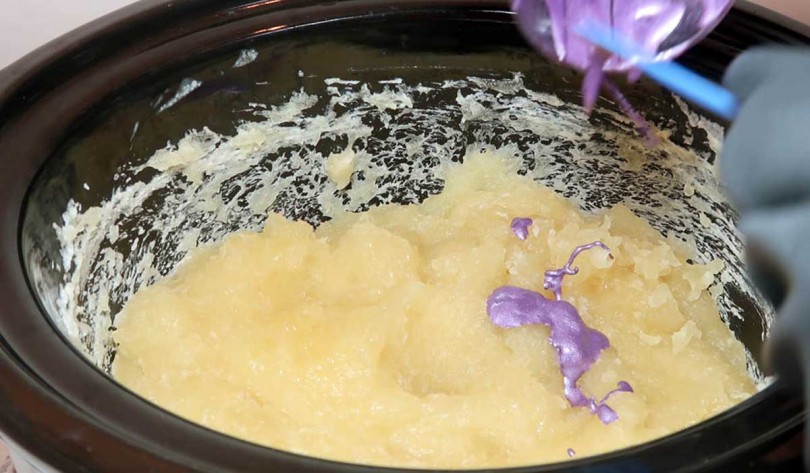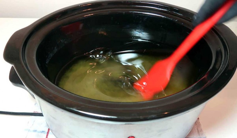 Сначала процесс в точности совпадает с приготовлением по холодному способ до стадии «следа». А вот после уже путь у мыла иной.