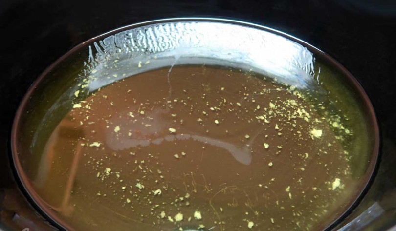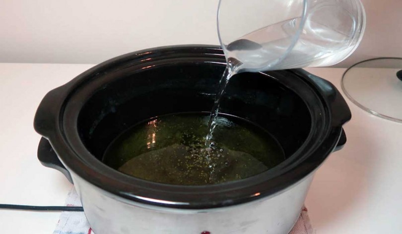 Получившуюся мыльную массу нужно поставить на водяную баню, причём, воду наливают вплотную к уровню массы состава. Включают маленький огонь и томят раствор 3-4 часа под крышкой. Воду периодически подливают, раз в полчаса.