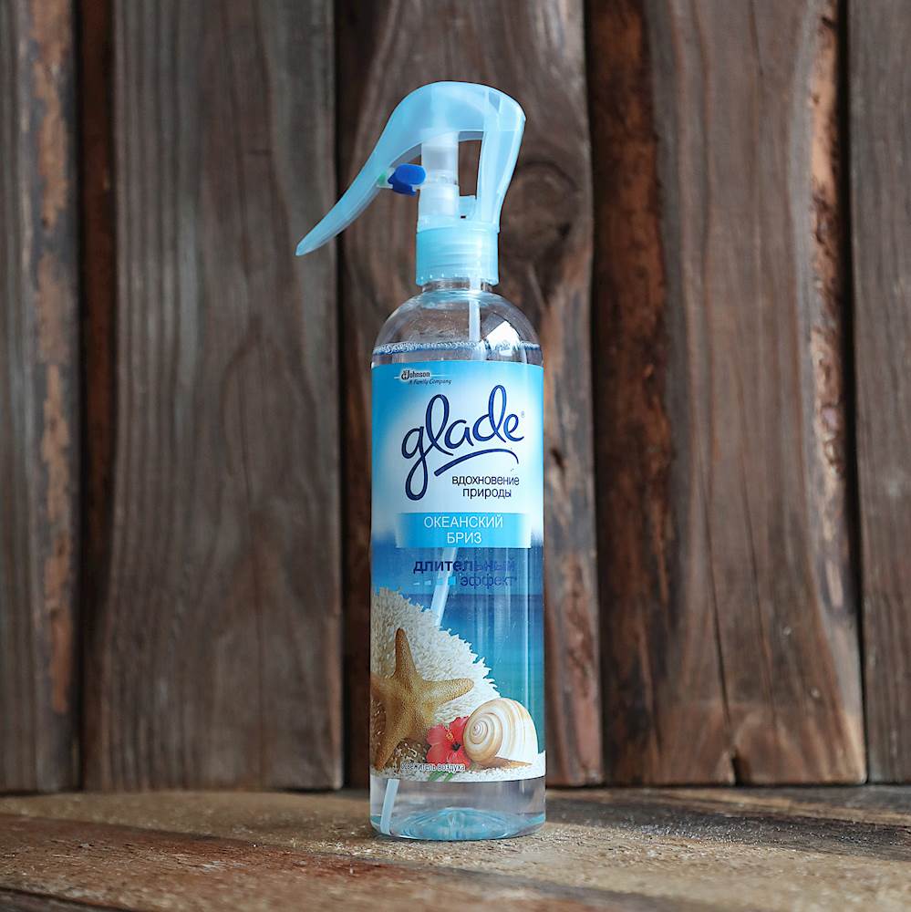 - Glade. Производитель отдает предпочтение изготовлению аэрозольной продукции. Отлично справляется с неприятными ароматами, но при этом нельзя не отметить непродолжительный эффект после распределения ароматизатора в помещении.