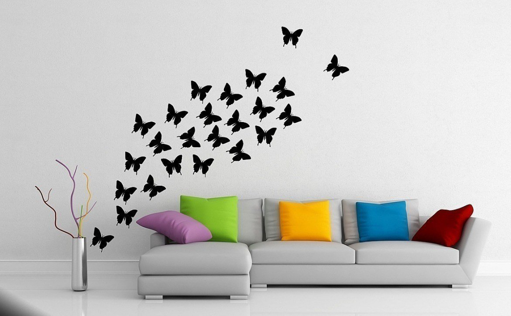 Декор в виде бабочек обычно подразумевает создание определенной композиции из множества ярких и красивых мотыльков. Ее конечный вид будет полностью зависеть от фантазии хозяина квартиры. Для размещения украшений подходят: