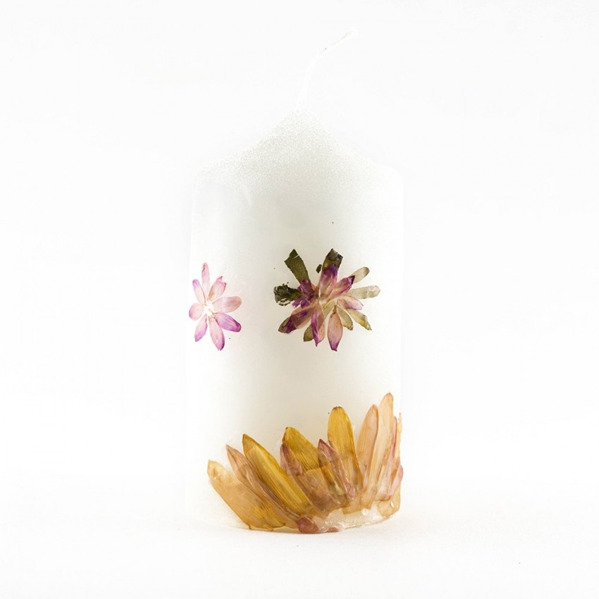 Зимой всегда хочется добавить в интерьер частичку лета. Поэтому можно сделать поделку новогоднюю свечу, украшенную сухоцветами.