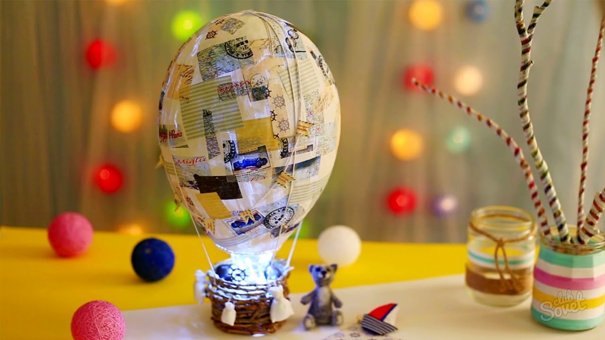 - 10 шаг — на оставшимся участке без бумаги, проколоть воздушный шарик и достать его (шар просушить внутри с помощью фена, также горячий воздух поможет вернуть форму готовой фигуры, если она деформировалась).