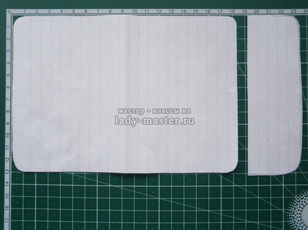 1. Раскроем паспорт (блокнот или книгу), положим на лист бумаги и обведем простым карандашом. Вырежем этот прямоугольник из бумаги. Используя его, нарисуем дополнительную деталь, которая совпадает по ширине с прямоугольником и предназначена для фиксирования документа в обложке.