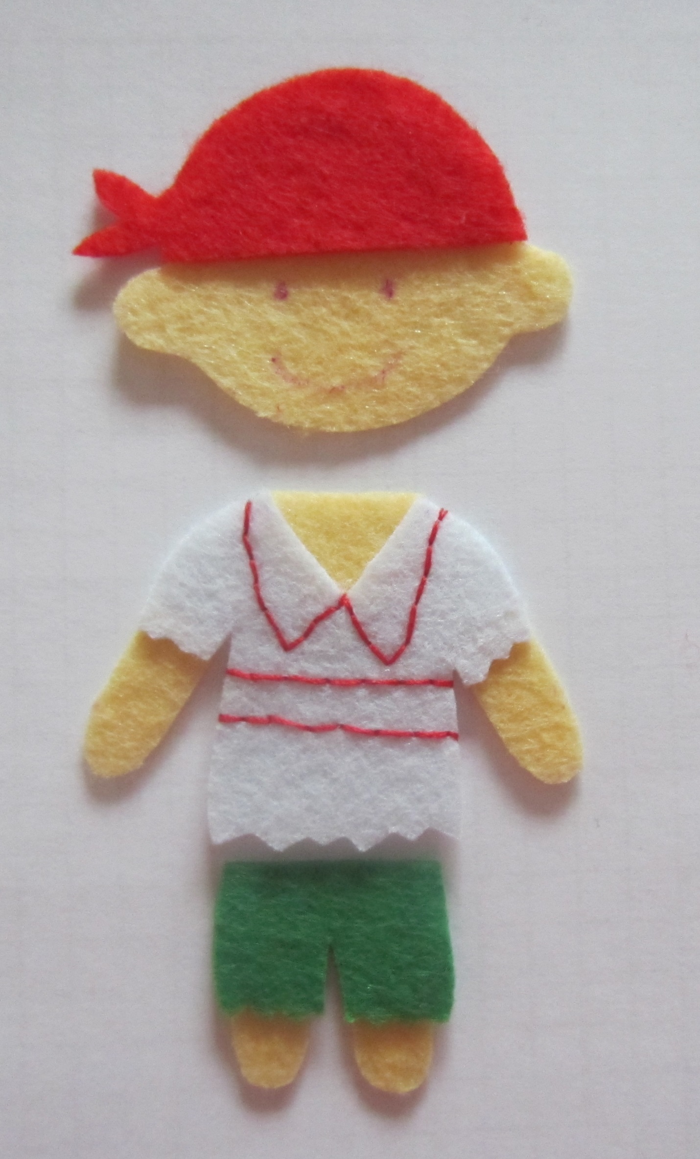 6. Теперь перенесем контуры этих деталей на цветные лоскутки фетра и вырежем их.