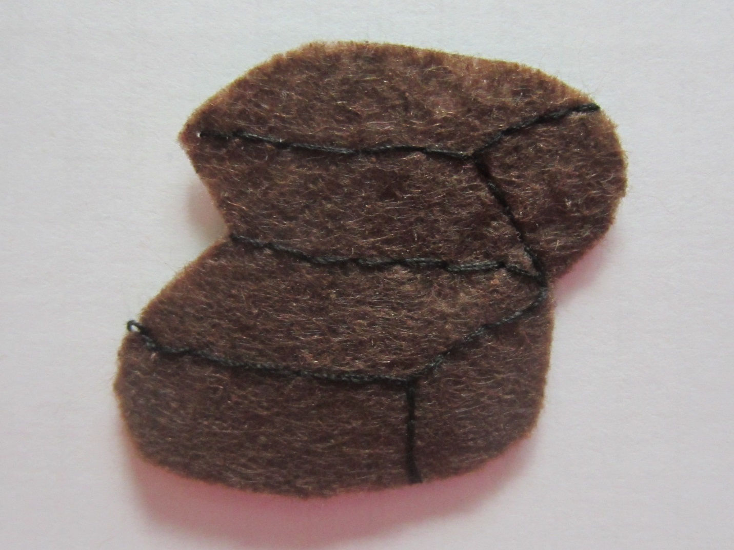 Получившуюся аппликацию накладываем поверх основы из темного фетра, которую мы подготовили в самом начале. Снизу основы, справа, подкладываем один из двух прямоугольников, уголки слегка скругляем и прошиваем по периметру швом «вперед иголка».