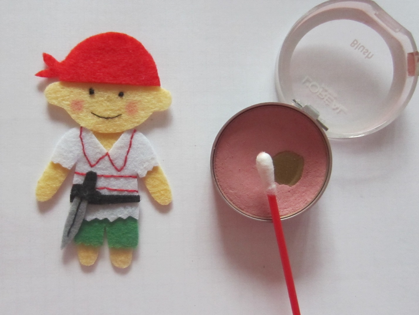 Вышиваем глазки и ротик, щечки можно нарисовать с помощью румян или пастелью.