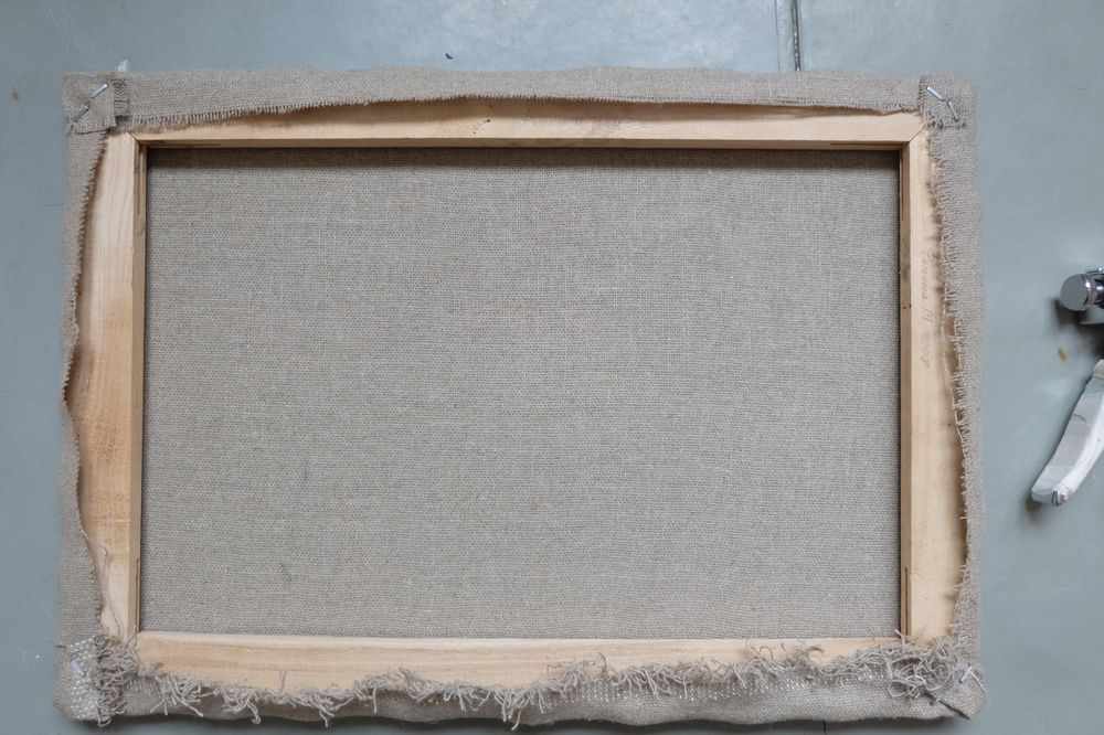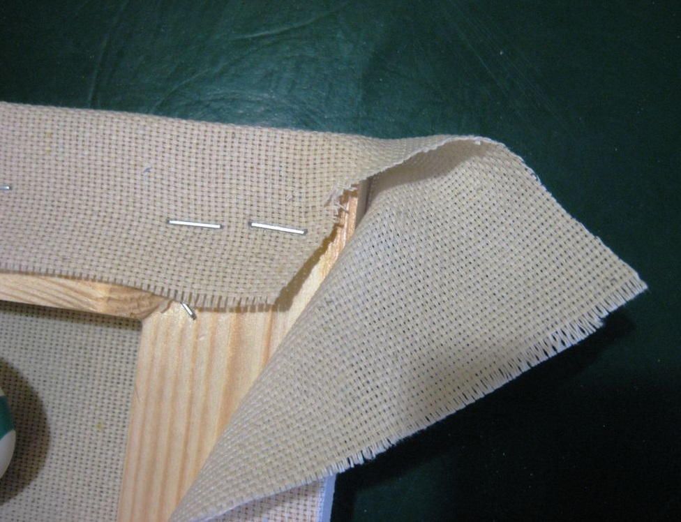 После натягивания канва должна выступать за край со всех сторон на несколько сантиметров. Края ткани подгибают и сшивают между собой по углам.