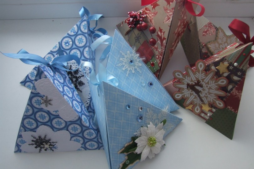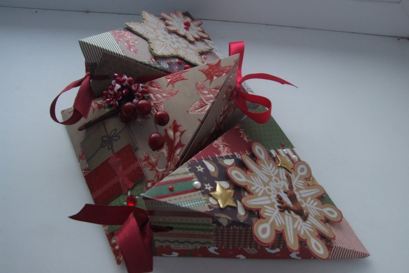 - Форму треугольника сделать очень легко, но помните, основным является не модель упаковки, а её украшение, ну и конечно сюрприз, который вы положите в упаковку.