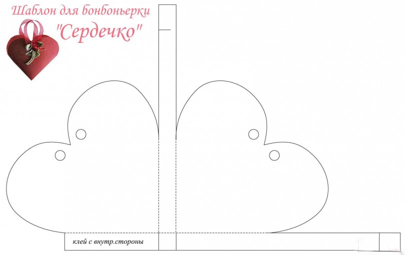 - Сгибаем в тех местах, где нанесена штриховая линия. Внутрь кладем конфетки и перевязываем конвертик лентой.