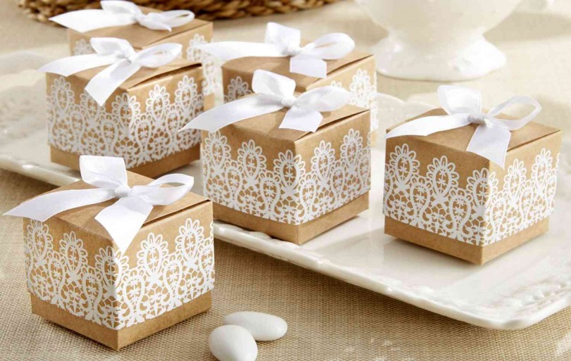 Традиционно сладости и приятные мелочи укладывают в красивые коробочки. Их перевязывают яркими лентами в цвет свадебной тематики, если она выбрана. Украшают различными сухими цветами, травами, бусинами. Можно разместить милые романтические надписи на бонбоньерках или прикрепить бирочку с именем гостя.