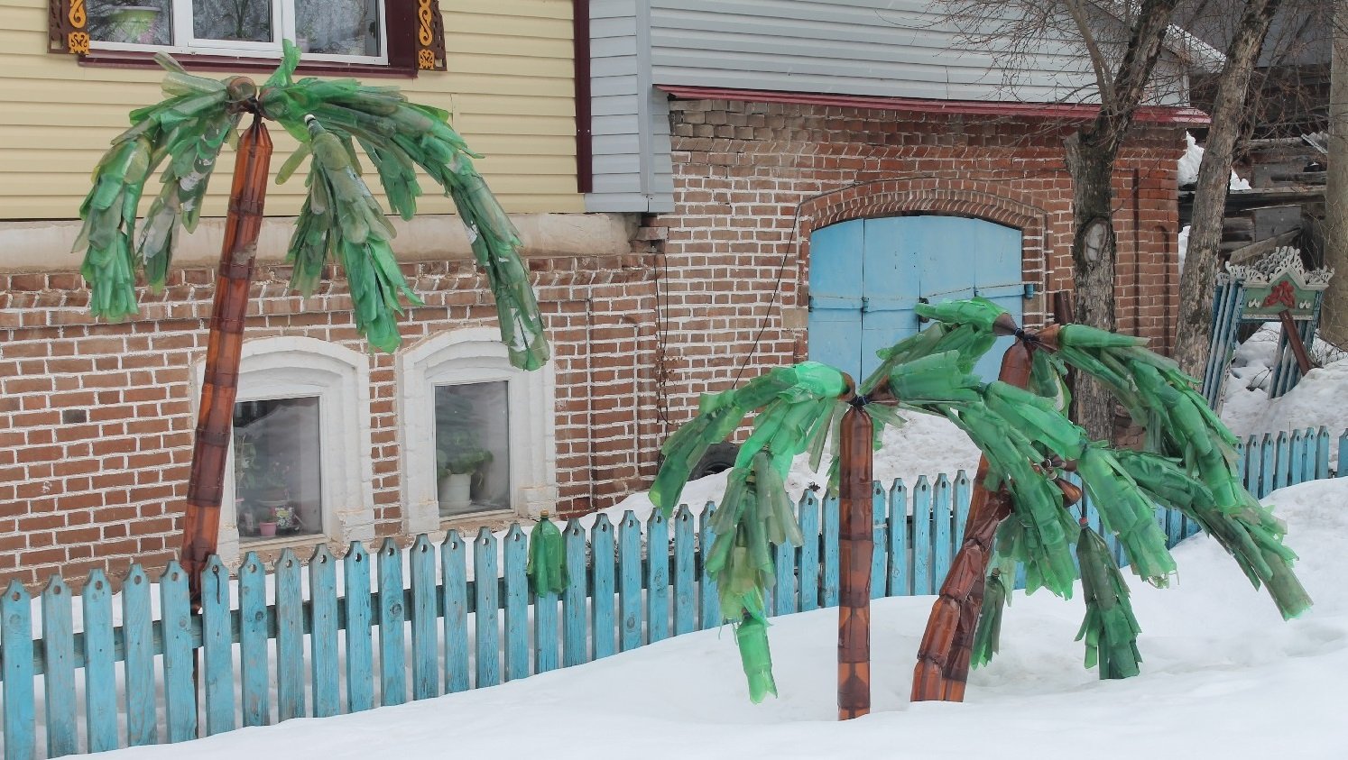 Красивая вечнозелёная пальма из пустых полиэтиленовых бутылок, которая приносит тепло и зимой и летом, готова! Таким несложным способом возможно самостоятельно создать райский южный уголок на свободной садовой площади.
