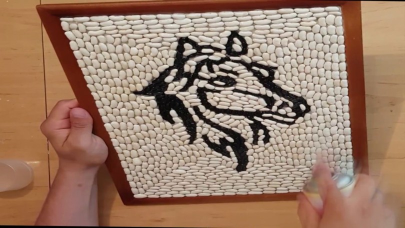 Отделка конструкции фасолью и спичками