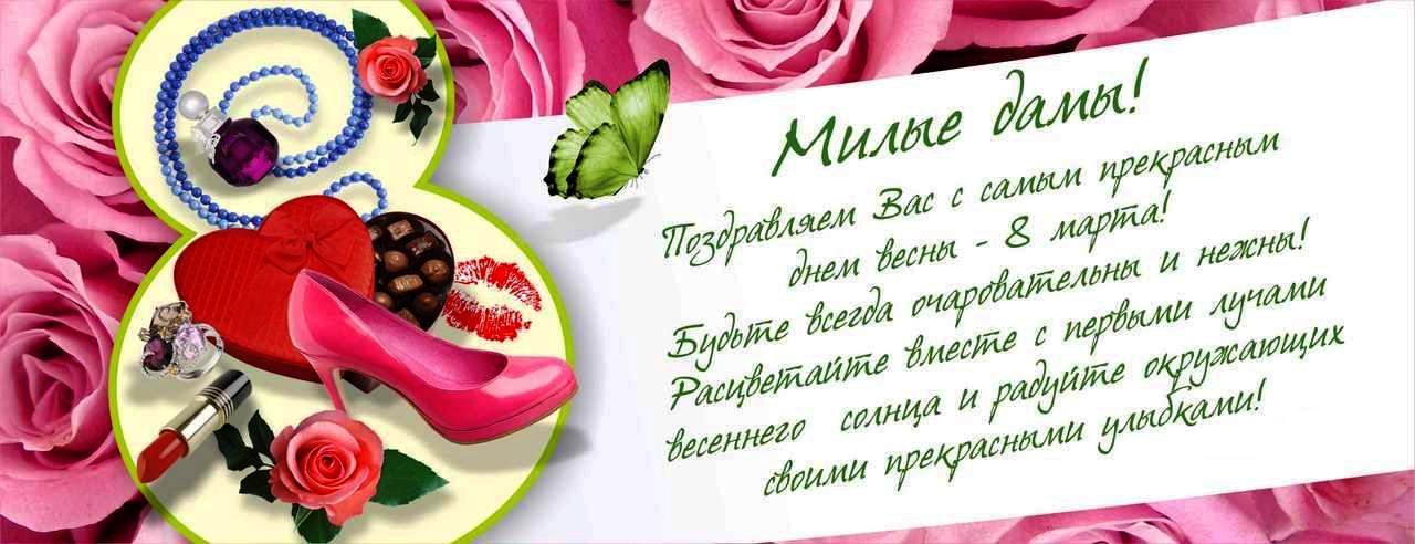 Дорогие наши, любимые женщины, самые привлекательные и красивые, молодые и стройные, добрые и сердечные! Любимые наши жены, дочери, матери, тещи, подруги и все-все сильные и прекрасные женщины! Поздравляем вас с днем 8 Марта! Желаем, чтобы ваши сердца принадлежали тем, кто любит и обожает вас, чтобы каждый день и час вы ощущали любовь и заботу, преданность и верность, помощь и поддержку! Любите сами и будьте всегда любимы, оставайтесь такими же прекрасными и неповторимыми, надежными и трудолюбивыми, нежными и теплыми! Счастья вам, радости и удачи всегда и во всём!