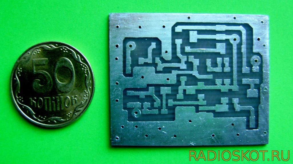 После приобретения всего необходимого наступает самый ответственный момент – подготовка платы и пайка радиодеталей. Вырезаем из текстолита прямоугольник таких размеров, чтобы он поместился в корпус. Берем в руки маркер, размечаем токоведущие дорожки и места крепления радиодеталей. Делаем травление, чтобы смыть с поверхности текстолита следы меди.