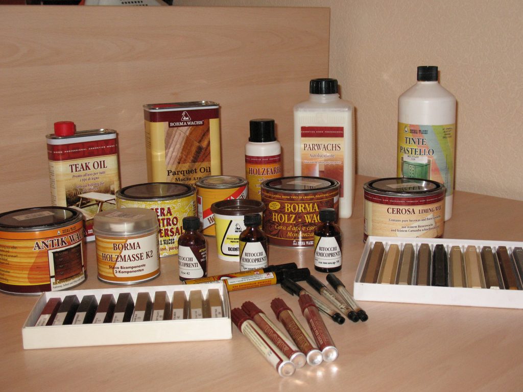 Выбор материалов тоже зависит от фронта работ. Для реставрации могут понадобиться смывки лакокрасочных покрытий, составы, которые заполняют царапины и сколы, не оставляя от них следа. Многие средства продаются в обычном строймаркете, а вот некоторые (мебельные воски и мебельная кромка) приобретаются в специализированных магазинах. Впрочем, сегодня их проще заказать по интернету.