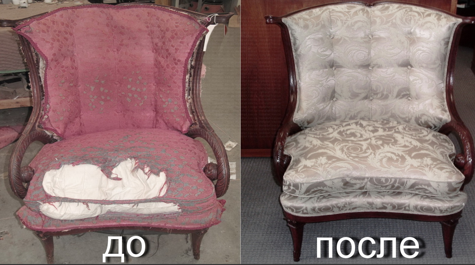 Рисунок 5. Каминные кресла до и после реставрации.