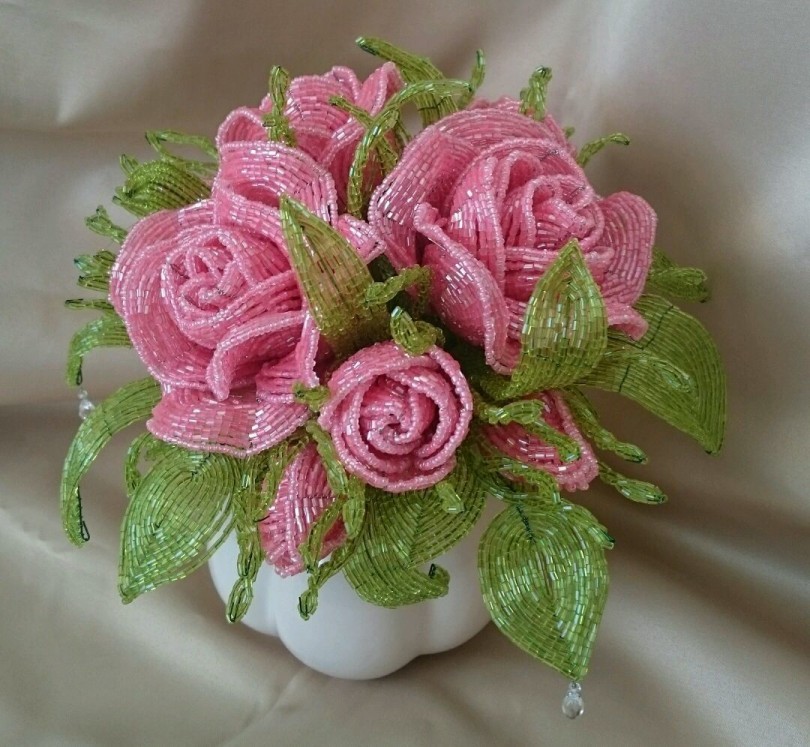 Итак, все части, из которых будет собираться наш цветок готовы, а значит, можем приступать к формированию розы из бисера.