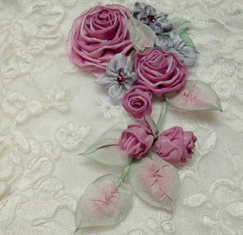 Платья украсили броши, а причёски — заколки с искусно сшитыми и закрученными лоскутками ткани. В XIX столетии тканевые розочки перекочевали на дамские шляпки, сумочки и различные аксессуары. Мужской костюм украсили бутоньерки.