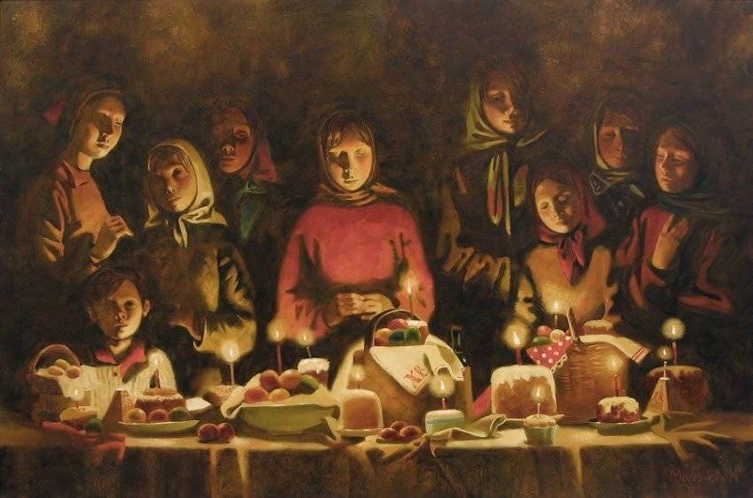 Фото: Православная семья молиться за столом с праздничными куличами / babiki.ru