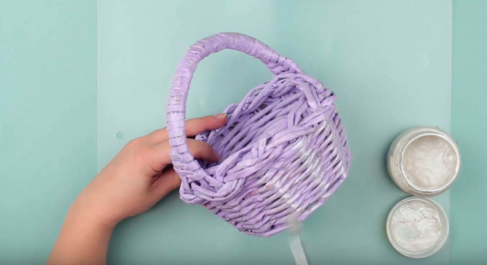 Докрашиваем корзинку полностью и подбираем проводок для ручки (чтобы ручка держалась):