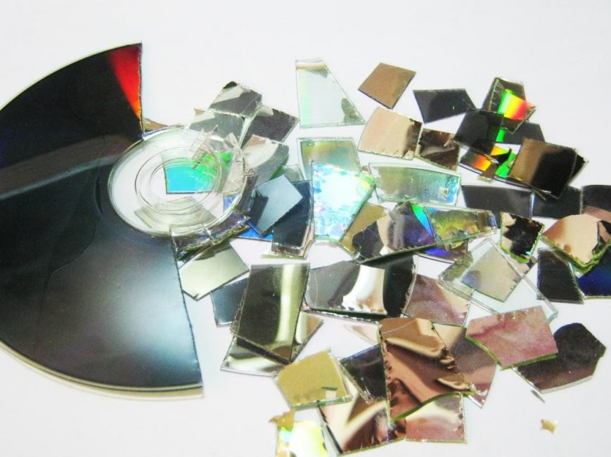 Ножницами разрезаем диски на небольшие кусочки разной формы.