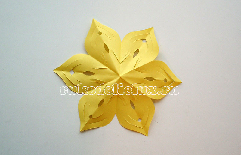 9. Разворачиваем и любуемся на результат. Теперь мы знаем, как вырезать красивые снежинки из бумаги.