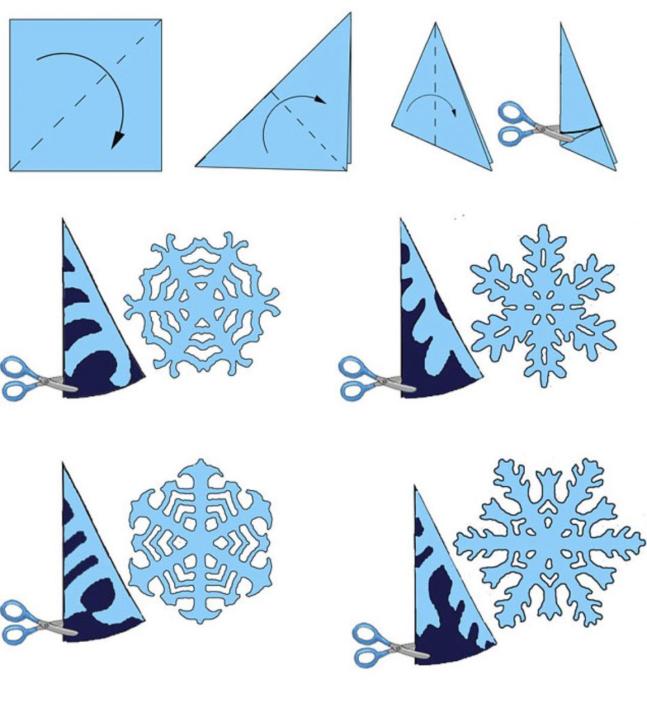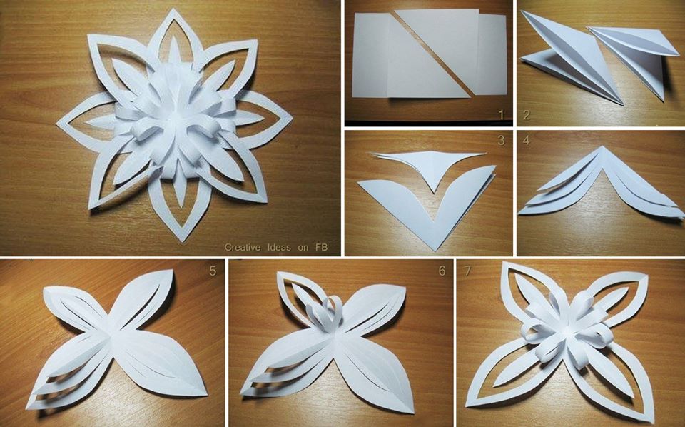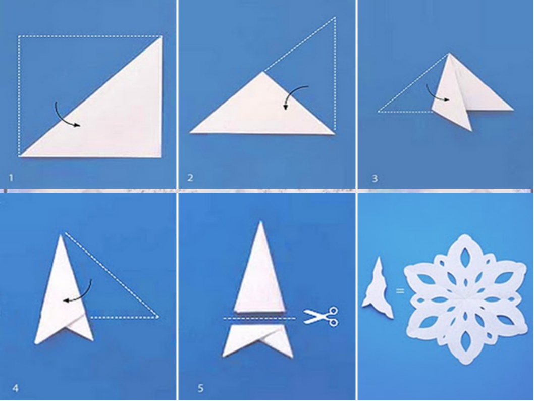 Настоящие снежинки имеют 6 лучей, но у каждого есть возможность сделать четырех-лучевую поделку или же изделие с восемью лучами. То, сколько таких лучиков будет у поделки, зависит лишь того, как именно складывать бумагу для заготовки.