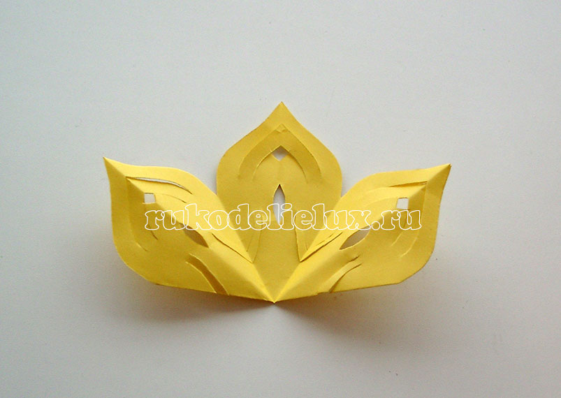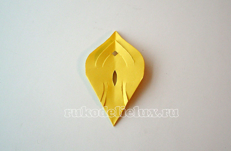 - Вырежьте галочку — у нас получатся лепестки. Сделайте еще несколько надрезов по лепестку, как показано на картинке.