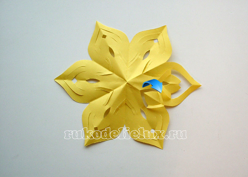 Собираем готовую объемную снежинку, вдевая друг в друга.