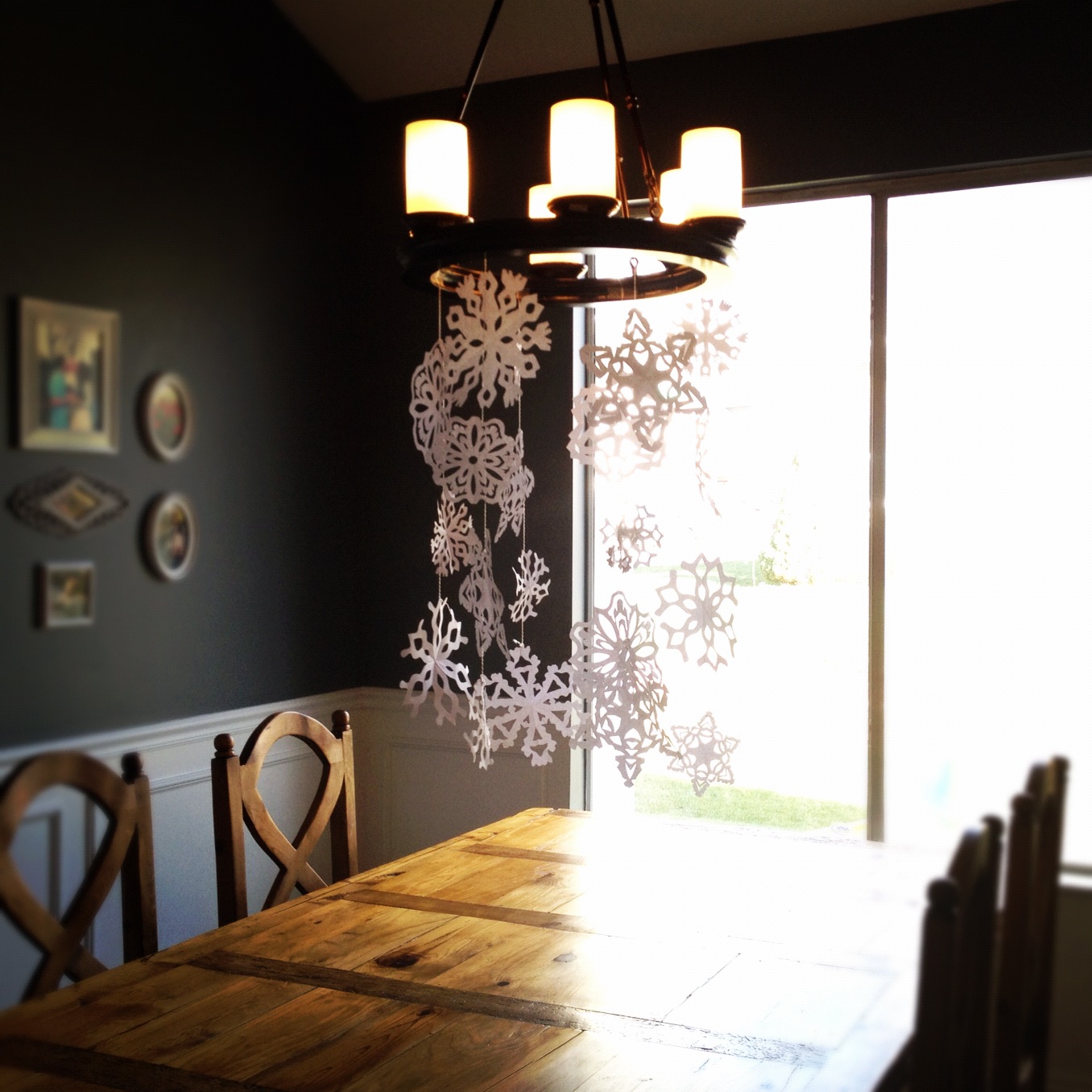 Также зимний интерьер могут разукрасить подвески из снежинок. Они будут прекрасно смотреться под люстрой, становясь ее креативным продолжением.