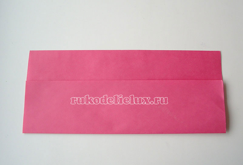 2. А потом еще раз пополам по длинной стороне. И снова разгибаем.