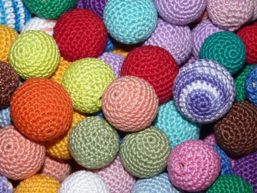 Для начала нам нужно вырезать из поролона шарики нужного размера, затем обвязать их крючком нитками. Чтобы бусины были плотнее, их можно наполнить скатанным шариком бинтом или кусочком ткани.
