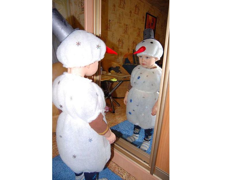 Прежде чем начать мастерить, нужно вспомнить, что же такое снеговик и определиться – из чего будет складываться костюм.    Настоящий снеговик делается из трех шаров снега разной величины, которые плотно укладываются один на другой. Верхний шар – голова, средний – туловище, а самый большой должен символизировать ноги.    У него есть шапка, глаза, рот, нос, руки. Обязательный шарфик и метла в руке тоже должны присутствовать.    Итак, что же должен включать в себя маскарадный костюм, изображающий этого персонажа?