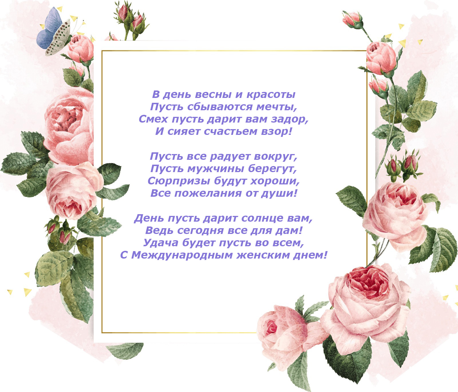 Подготовлю поздравления Маме, бабушке, сестре, Воспитателю, подружке, Всем девчонкам во дворе…