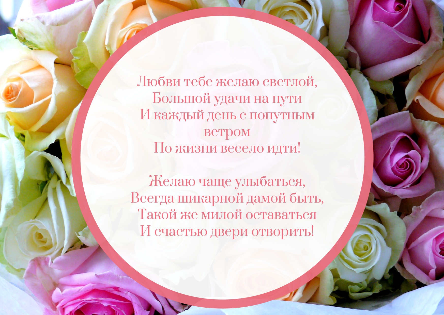 Желаю цвести И всегда улыбаться, Веселыми только Весь год оставаться!