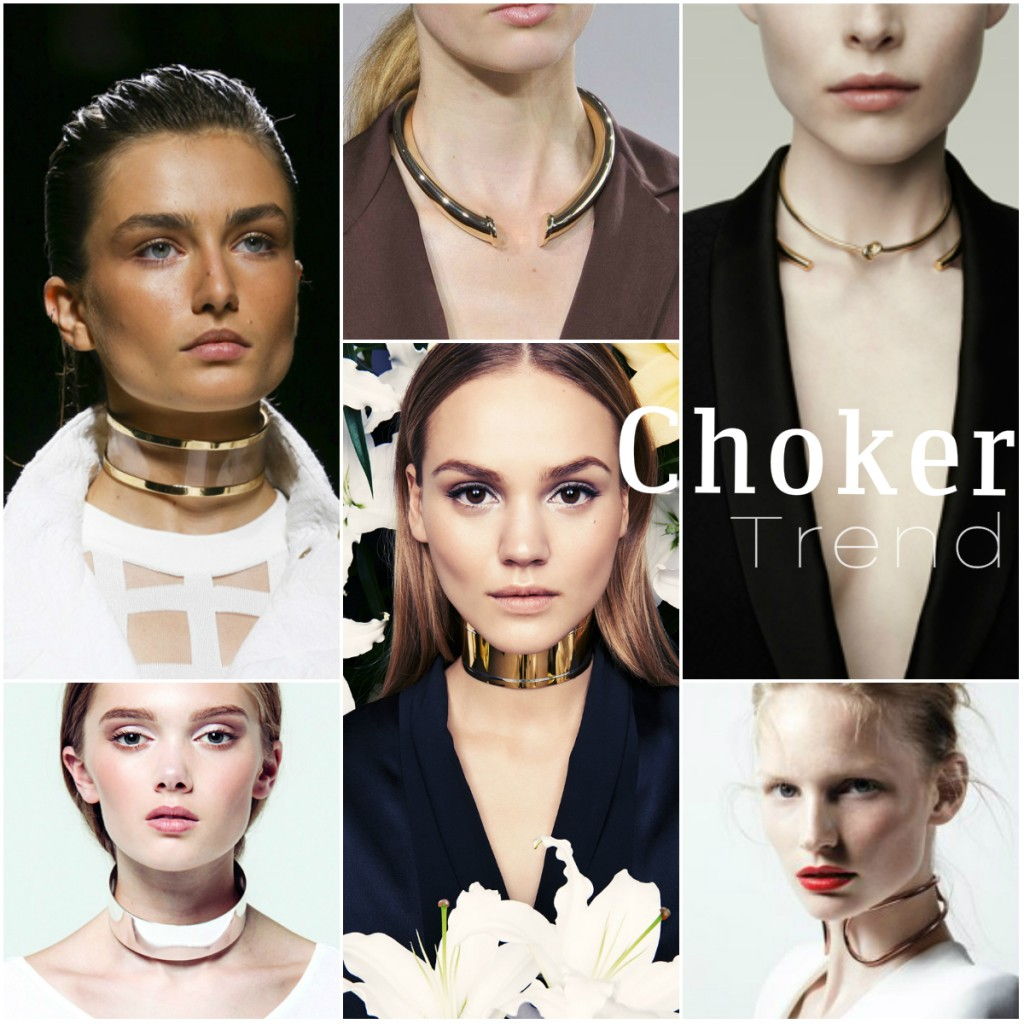 В тренде металлические, текстильные, шёлковые ожерелья, дополненные стразами, камнями, бахромой и кристаллами. Они незаменимы в повседневных и деловых образах, а также являются вариантами для праздничных луков. В моде также оригинальные кожаные чокеры, которые можно носить с офисной одеждой.