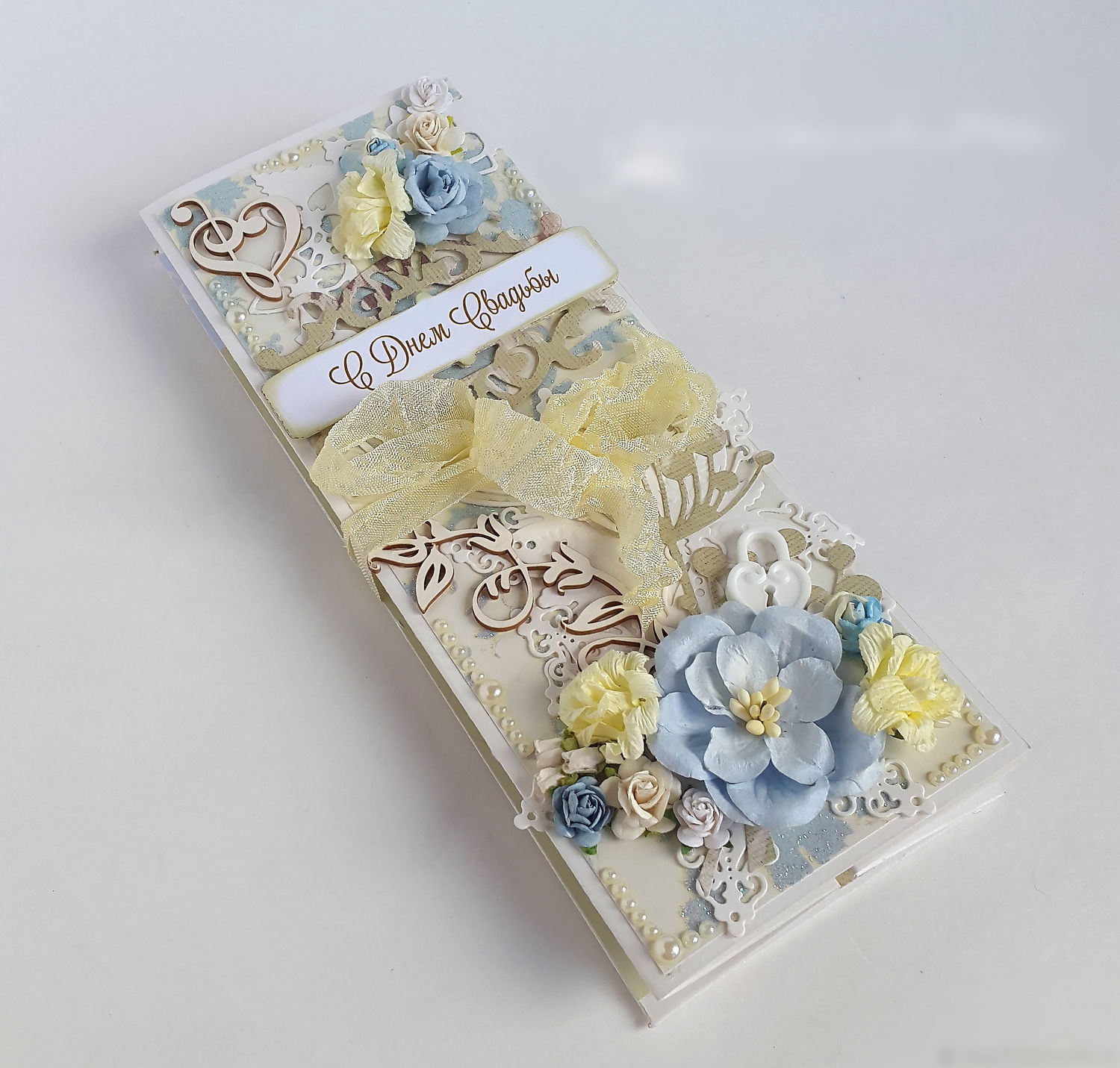 Можно сделать открытку с готового шаблона, добавив лишь поздравление, или на основе представленного, создать нечто оригинальное, неповторимое и нежное, которое учтёт в себе индивидуальность как создателя, так и молодоженов.