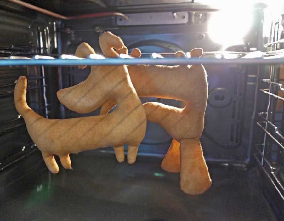 - Высушите заготовки в разогретой до 75°C духовке в течение 10 минут. Для сушки также можно использовать фен.