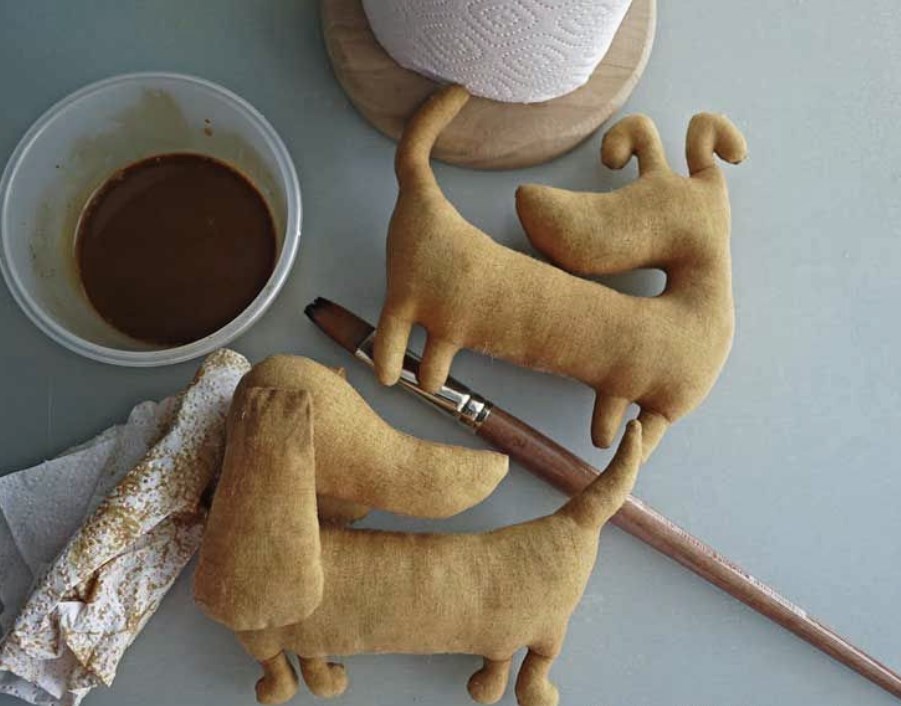 - Добавьте пол чайной ложки коричневой акриловой краски в оставшуюся кофейную смесь. Нарисуйте на игрушках пятнышки, как подскажет фантазия.