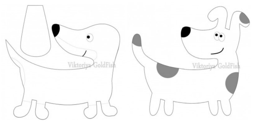 Выберите рисунок собачки желаемой породы или воспользуйтесь предложенным вариантом. Распечатайте изображение нужного размера на принтере или нарисуйте контуры от руки в двух экземплярах. Один рисунок разрежьте на выкройки.