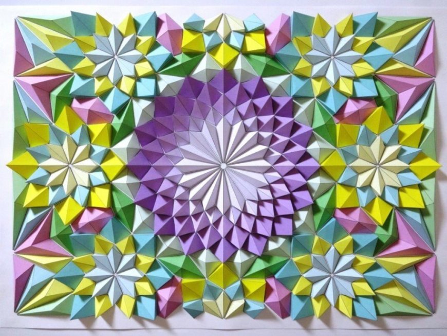 Это один из самых легких для выполнения видов с отличным результатом. Сделать панно из бумаги можно, выбрав любую тему. Понадобятся простые приспособления: карандаш, линейка, ножницы, клей.