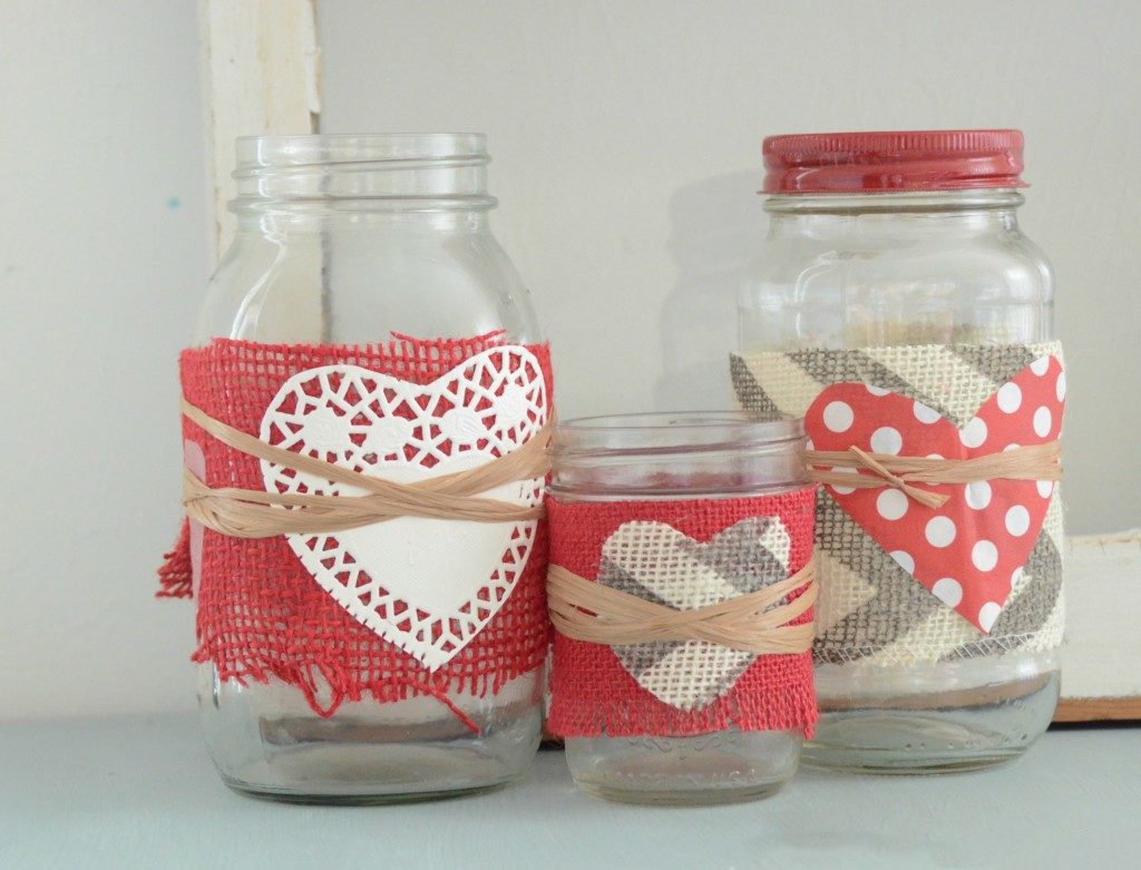 Украсьте банку по желанию такими материалами: кружевами, декоративными цветами, бусинками, стразами или лентами.