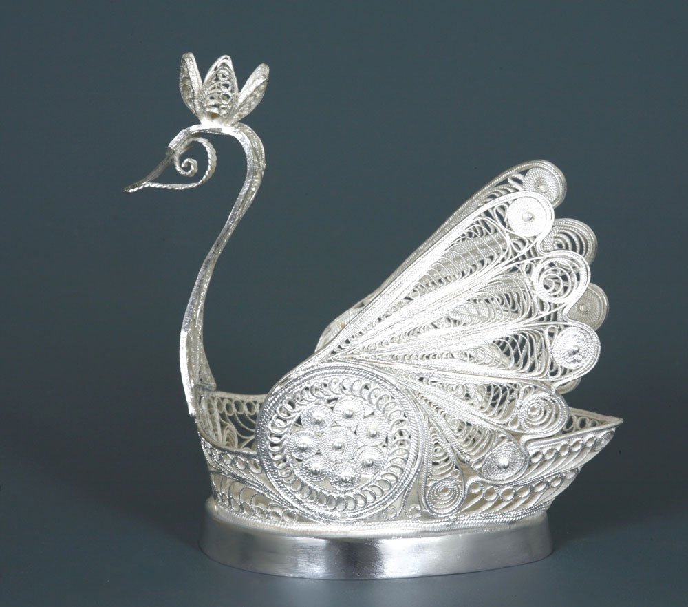 Эта техника появилась достаточно давно. В древности использовалась ювелирная филигрань. С её помощью украшали драгоценные камни и получали прекрасные ювелирные изделия. Вместо нитей тогда использовали проволоки из драгоценных металлов. Этот процесс довольно трудный, поэтому его сегодня могут выполнять только квалифицированные специалисты.
