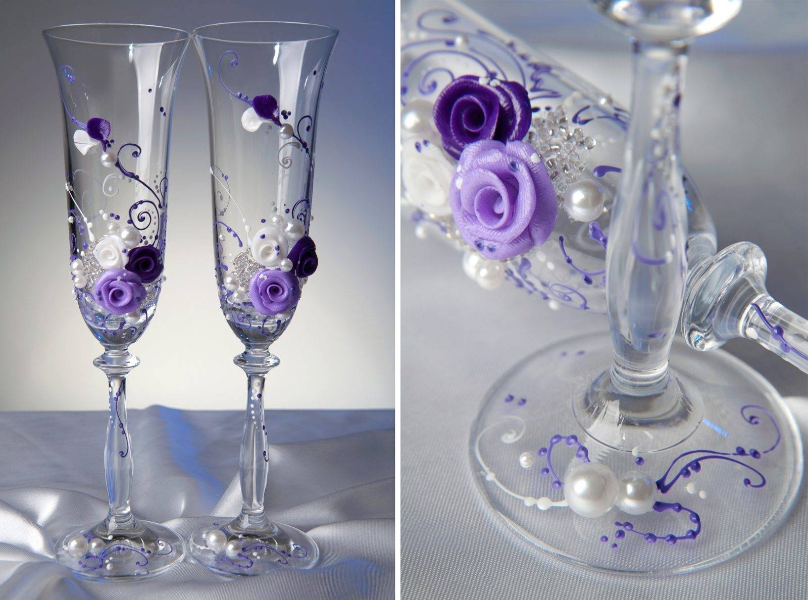 Оформление свадебных бокалов своими руками — дело хлопотливое, но стоящее того. Бокалы, даже самые красивые и дорогие, будут всё равно безликими, если вы не потрудитесь их украсить. А необычные бокалы, оформленные лично вами с любовью и нежностью, с предвкушением предстоящих эмоций и впечатлений, уж точно будут дороги вам. Они займут самое почётное место в вашем доме, и долго ещё будут напоминать вам о прекрасном торжестве и о вкусе самого страстного и сладкого шампанского.