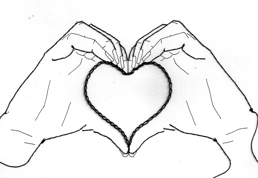 С помощью простой бумаги и черной нити можно легко изобразить чувственный поцелуй…