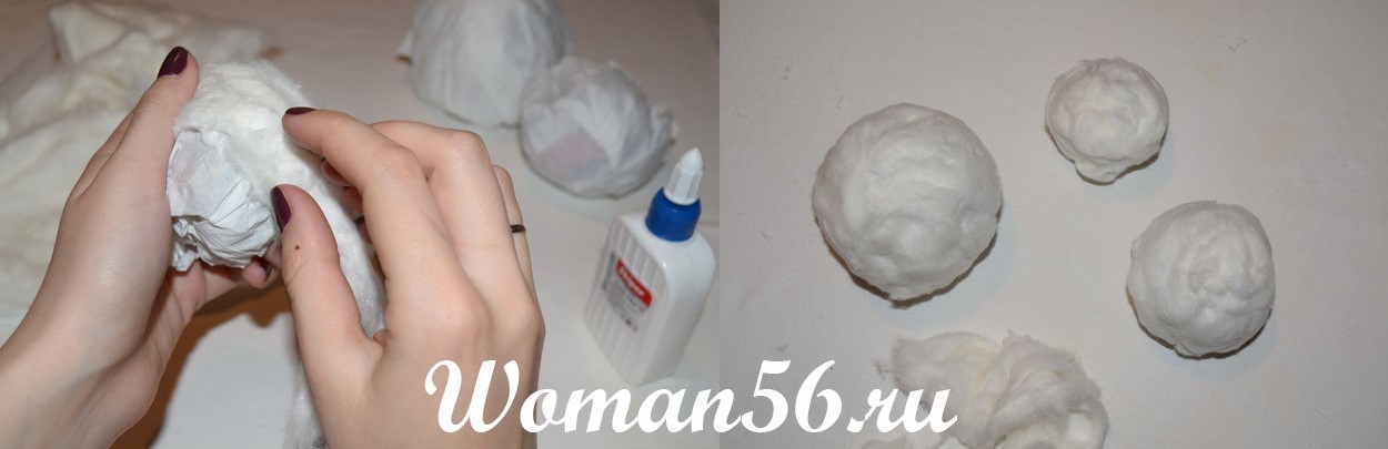 5. Следующим этапом будет повторная оклейка мячиков ватой. Процесс нам уже знаком, вот только пластины делаем потолще.